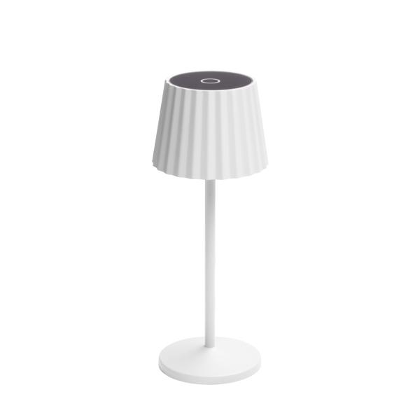 LED-Akkutischleuchte, Touchdim, IP54, Höhe 285 mm, strukturweiß. Ausführung in kompakter Bauform für die harmonische Implementierung in stimmige, architektonische Raumkonzepte. Ausführung: ohne Fassung, Montageart: Anbaumontage, Montageort: Tischmontage, Material: Aluminium / Glas / Kunststoff, Schutzart raumseitig: nach DIN EN 60529: IP54, Schutzklasse: (EN 61140) III, Leistung: 4,8 W, Anzahl der Leuchtmittel / Fassungen: 1 Stück, Lichtstrom: 150 lm, Lichtfarbe: weiß, Mit Betriebsgerät: Ja, Dimmbar: Ja, Art der Dimmung: sonstige.
