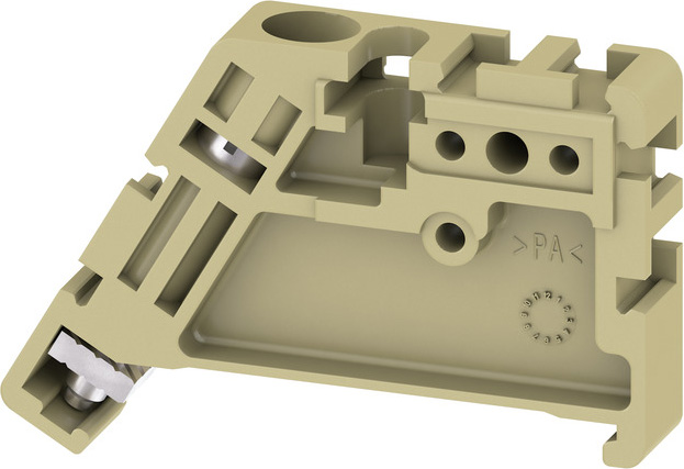 Der Endwinkel gewährleistet einen dauerhaft sicheren Sitz auf der Tragschiene und verhindert ein Verrutschen. Der Endwinkel verfügt über Markierungsmöglichkeiten für Gruppenmarkierer und die Möglichkeit der Aufnahme von Prüfsteckern.