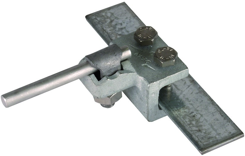 Klemme nach DIN EN 62561-1, für den Anschluss an Stahlkonstruktionen und Stahlbleche. Ausführung für den Anschluss mit KS-Schraube längs oder quer.