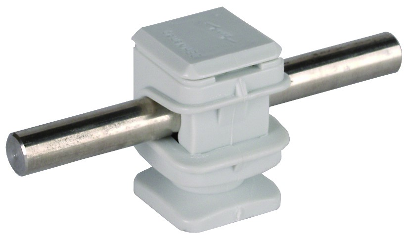 Leitungshalter DEHNsnap zum Verlegen von Runddrähten. Kunststoffhalter-System mit seitlicher Einführung und selbsteinrastender Kappe (doppelter Kappenrasterung). Schraubenloses Haltersystem mit loser Leitungsführung. Ausführung Bauhöhe 16 mm und Innengewinde, aus wetterbeständigem Kunststoff, UV-stabilisiert und halogenfrei.
