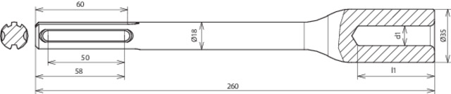Hammereinsatz zum Eintreiben von Tiefenerdern mit Vibrationshämmern. Ausführung mit SDS-max (rund 18 x 175 mm) Aufnahme.