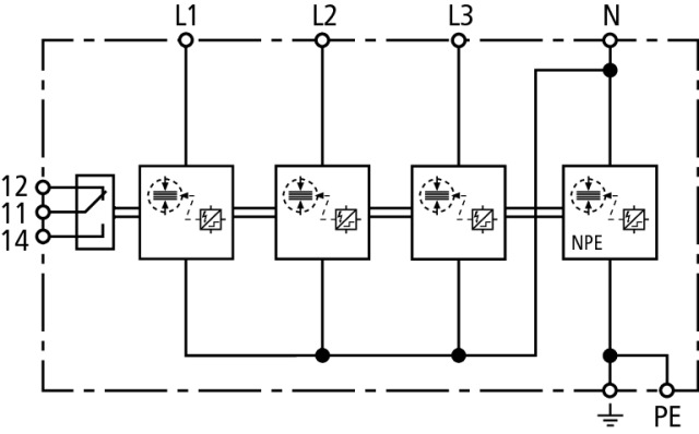 Mehrpoliger, anwendungsoptimierter Kombiableiter DEHNshield, Typ 1 + Typ 2 nach EN 61643-11 auf Funkenstreckenbasis. Platzsparende Funkenstreckentechnologie mit nur 1 TE / Pol ermöglicht kompakte Ausführung. Zum Schutz von Wohngebäuden und zum Einsatz in speziellen Anwendungen. Ermöglicht Endgeräteschutz. Zum Schutz vor Überspannungen, auch bei direkten Blitzeinschlägen. Einsetzbar nach dem Blitz-Schutzzonen-Konzept an den Schnittstellen 0A 2.