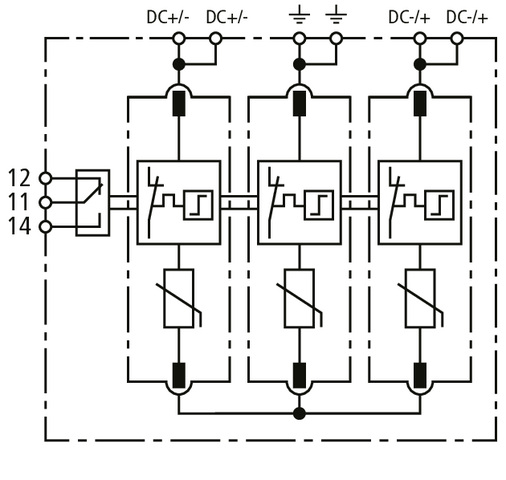 Mehrpoliger Überspannungsableiter DEHNguard MP YPV, Typ 2 nach EN 61643-31, bestehend aus Basisteil mit gesteckten Schutzmodulen und Doppel-Push-In-Anschlussklemme für Stich- und Durchgangsverdrahtung geeignet. Hohe Gerätesicherheit durch Ableiterüberwachung mit Thermo-Dynamik-Control. Zum Schutz von Niederspannungs-Verbraucheranlagen vor Überspannungen. Zum Einsatz gemäß IEC 60364-7-712:2002-05 (Errichten von Photovoltaik-Versorgungssystemen).