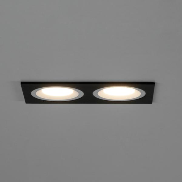 Einbaugehäuse, rechteckig, bündig, 2-fach, mit Modulhalterungen bündig, starr, IP44, ohne LED-Module, außen strukturschwarz / innen strukturweiß , quadratisch. Ausgeführt in kompakter Bauform für werkzeuglose Schnellmontage zum Deckeneinbau. Alle Brumberg MR16-LED-Module sind für die Einbaueinheit M1 bis zur maximal angegebenen Leistung einsetzbar. Die Einbautiefe der Leuchte richtet sich nach den jeweils verwendeten LED-Modulen. Die LED-Module sind im Lieferumfang der Einbaueinheit nicht enthalten. Ausführung: ohne Fassung, Montageart: Einbaumontage, Montageort: Deckenmontage, Material: Aluminium, Schutzart raumseitig: nach DIN EN 60529: IP44, Schutzklasse: (EN 61140) III, Leistung: 13 W, Anzahl der Leuchtmittel / Fassungen: 2 Stück, Verstellbarkeit: nicht verstellbar, ohne Betriebsgerät, Dimmbar: Abhängig vom Betriebsgerät, Art der Dimmung: Abhängig vom Betriebsgerät.
