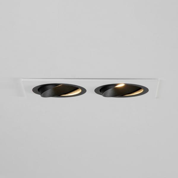 Einbaugehäuse, rechteckig, bündig, 2-fach, mit Modulhalterungen vertieft, schwenkbar, ohne LED-Module, außen strukturweiß / innen strukturschwarz, quadratisch. Ausgeführt in kompakter Bauform für werkzeuglose Schnellmontage zum Deckeneinbau. Alle Brumberg MR16-LED-Module sind für die Einbaueinheit M1 bis zur maximal angegebenen Leistung einsetzbar. Die Einbautiefe der Leuchte richtet sich nach den jeweils verwendeten LED-Modulen. Die LED-Module sind im Lieferumfang der Einbaueinheit nicht enthalten. Ausführung: ohne Fassung, Montageart: Einbaumontage, Montageort: Deckenmontage, Material: Aluminium, Schutzart raumseitig: nach DIN EN 60529: IP20, Schutzklasse: (EN 61140) III, Leistung: 13 W, Anzahl der Leuchtmittel / Fassungen: 2 Stück, Verstellbarkeit: schwenkbar, ohne Betriebsgerät, Dimmbar: Abhängig vom Betriebsgerät, Art der Dimmung: Abhängig vom Betriebsgerät.