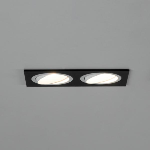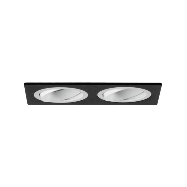 Einbaugehäuse, rechteckig, bündig, 2-fach, mit Modulhalterungen vertieft, schwenkbar, ohne LED-Module, außen strukturschwarz / innen strukturweiß , quadratisch. Ausgeführt in kompakter Bauform für werkzeuglose Schnellmontage zum Deckeneinbau. Alle Brumberg MR16-LED-Module sind für die Einbaueinheit M1 bis zur maximal angegebenen Leistung einsetzbar. Die Einbautiefe der Leuchte richtet sich nach den jeweils verwendeten LED-Modulen. Die LED-Module sind im Lieferumfang der Einbaueinheit nicht enthalten. Ausführung: ohne Fassung, Montageart: Einbaumontage, Montageort: Deckenmontage, Material: Aluminium, Schutzart raumseitig: nach DIN EN 60529: IP20, Schutzklasse: (EN 61140) III, Leistung: 13 W, Anzahl der Leuchtmittel / Fassungen: 2 Stück, Verstellbarkeit: schwenkbar, ohne Betriebsgerät, Dimmbar: Abhängig vom Betriebsgerät, Art der Dimmung: Abhängig vom Betriebsgerät.