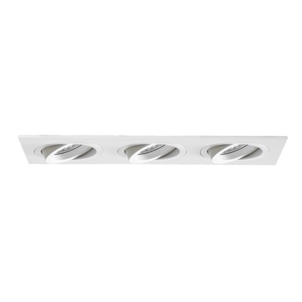 Einbaugehäuse, rechteckig, bündig, 3-fach, mit Modulhalterungen bündig, schwenkbar, ohne LED-Module, strukturweiß, quadratisch. Ausgeführt in kompakter Bauform für werkzeuglose Schnellmontage zum Deckeneinbau. Alle Brumberg MR16-LED-Module sind für die Einbaueinheit M1 bis zur maximal angegebenen Leistung einsetzbar. Die Einbautiefe der Leuchte richtet sich nach den jeweils verwendeten LED-Modulen. Die LED-Module sind im Lieferumfang der Einbaueinheit nicht enthalten. Ausführung: ohne Fassung, Montageart: Einbaumontage, Montageort: Deckenmontage, Material: Aluminium, Schutzart raumseitig: nach DIN EN 60529: IP20, Schutzklasse: (EN 61140) III, Leistung: 13 W, Anzahl der Leuchtmittel / Fassungen: 3 Stück, Verstellbarkeit: schwenkbar, ohne Betriebsgerät, Dimmbar: Abhängig vom Betriebsgerät, Art der Dimmung: Abhängig vom Betriebsgerät.