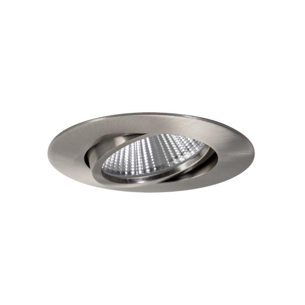 LED-Einbaustrahler, IP65, schwenkbar, nickel matt, rund. Ausgeführt in kompakter Bauform für werkzeuglose Schnellmontage zum Deckeneinbau. Ausführung: Plug&Play, Montageart: Einbaumontage, Montageort: Deckenmontage, Material: Aluminium / Silikonkautschuk / PMMA, Schutzart raumseitig: nach DIN EN 60529: IP65, Schutzklasse: (EN 61140) III, Leistung: 7,5 W, Anzahl der Leuchtmittel / Fassungen: 1 Stück, Lichtstrom: 730 lm, Farbtemperatur: 3.000 K, Abstrahlwinkel: 43°, Verstellbarkeit: schwenkbar, ohne Betriebsgerät, Dimmbar: Abhängig vom Betriebsgerät, Art der Dimmung: Abhängig vom Betriebsgerät.