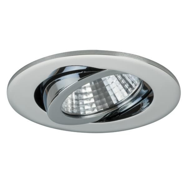 LED-Einbaustrahler, chrom glänzend, rund. Ausgeführt in kompakter Bauform für werkzeuglose Schnellmontage zum Deckeneinbau. Ausführung: Plug&Play, Montageart: Einbaumontage, Montageort: Deckenmontage, Material: Aluminium / Polycarbonat, Schutzart raumseitig: nach DIN EN 60529: IP20, Schutzklasse: (EN 61140) III, Leistung: 7 W, Anzahl der Leuchtmittel / Fassungen: 1 Stück, Lichtstrom: 740 lm, Farbtemperatur: 3.000 K, Abstrahlwinkel: 38°, Verstellbarkeit: schwenkbar, ohne Betriebsgerät, Dimmbar: Abhängig vom Betriebsgerät, Art der Dimmung: Abhängig vom Betriebsgerät.