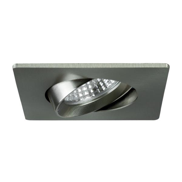 Einbaustrahler, GX5,3, nickel matt, quadratisch. Ausgeführt in kompakter Bauform für werkzeuglose Schnellmontage zum Deckeneinbau. Montageart: Einbaumontage, Montageort: Deckenmontage, Material: Aluminium, Schutzart raumseitig: nach DIN EN 60529: IP20, Schutzklasse: (EN 61140) III, Spannung: 12V, Leistung: 50 W, Anzahl der Leuchtmittel / Fassungen: 1 Stück, Verstellbarkeit: schwenkbar, ohne Betriebsgerät, Dimmbar: Abhängig vom Betriebsgerät, Art der Dimmung: Abhängig vom Betriebsgerät.