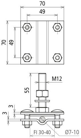 Anschlussklemmen mit Gewindebolzen zum Anschließen von Rund und Flachleitern an Erdungsfestpunkten mit Gewinde M10 / 12. Auch für die Montage auf der Rückseite des Erdungsfestpunktes ohne Anschlussachse z. B. für Flachband geeignet. Ausführung schwer, mit Anschlussgewinde M12.