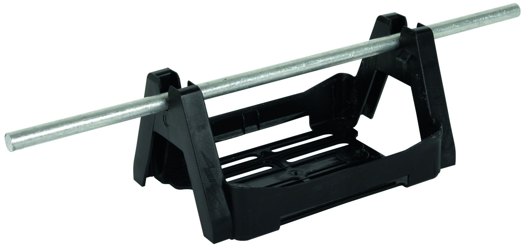 Dachleitungshalter mit zweifacher Leitungshalterung Typ KF2, zum Einklemmen in Dachbahnenstreifen (Stärke bis 5 mm), der mit der Dachbahn verschweißt oder verklebt ist. Zur Befestigung von Rundleitern mit loser Leitungsführung auf Flachdächern. Ausführung mit Grundplatte aus wetterbeständigem Kunststoff, UV-stabilisiert und halogenfrei.
