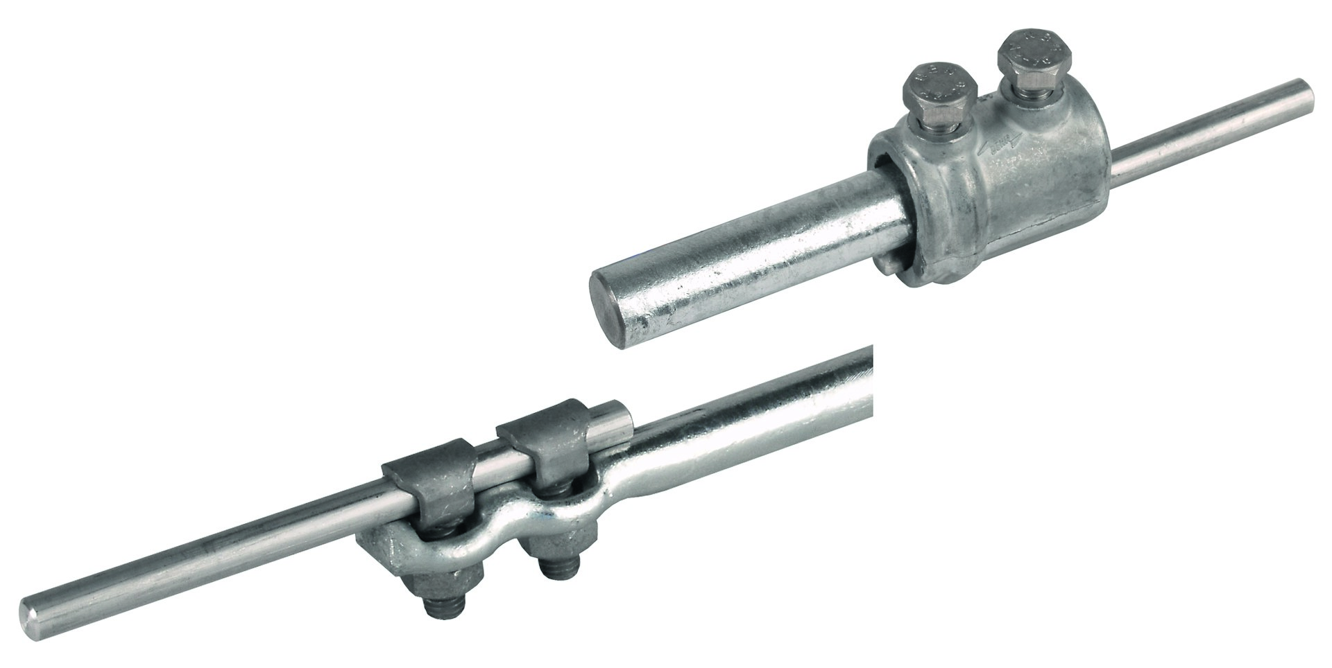 Erdeinführungsstange-Set nach DIN EN 62561-(1+2), komplett mit Trennmuffe und Anschlussklemmen (KS-Schrauben). Ausführung St/tZn mit Trennmuffe ZG.