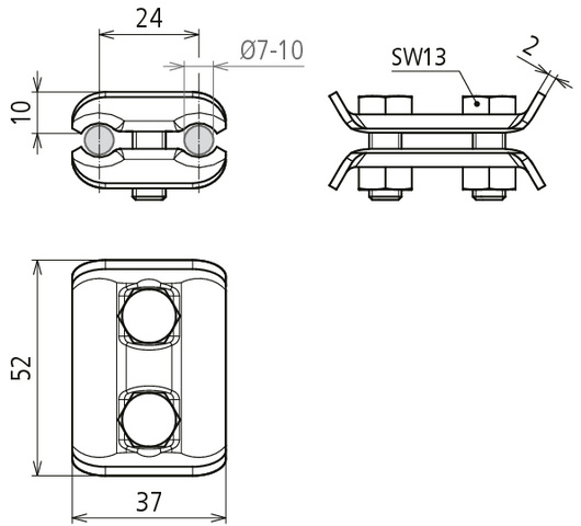 Parallelverbinder Cu f. Rd 7-10mm PV 7.10 SKM8X20
