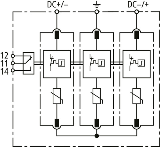 Mehrpoliger Überspannungsableiter DEHNguard M YPV, Typ 2 nach EN 61643-31, bestehend aus Basisteil und gesteckten Schutzmodulen. Hohe Gerätesicherheit durch Ableiterüberwachung mit Thermo-Dynamik-Control. Zum Schutz von Niederspannungs-Verbraucheranlagen vor Überspannungen. Zum Einsatz gemäß IEC 60364-7-712:2002-05 (Errichten von Photovoltaik-Versorgungssystemen). - old