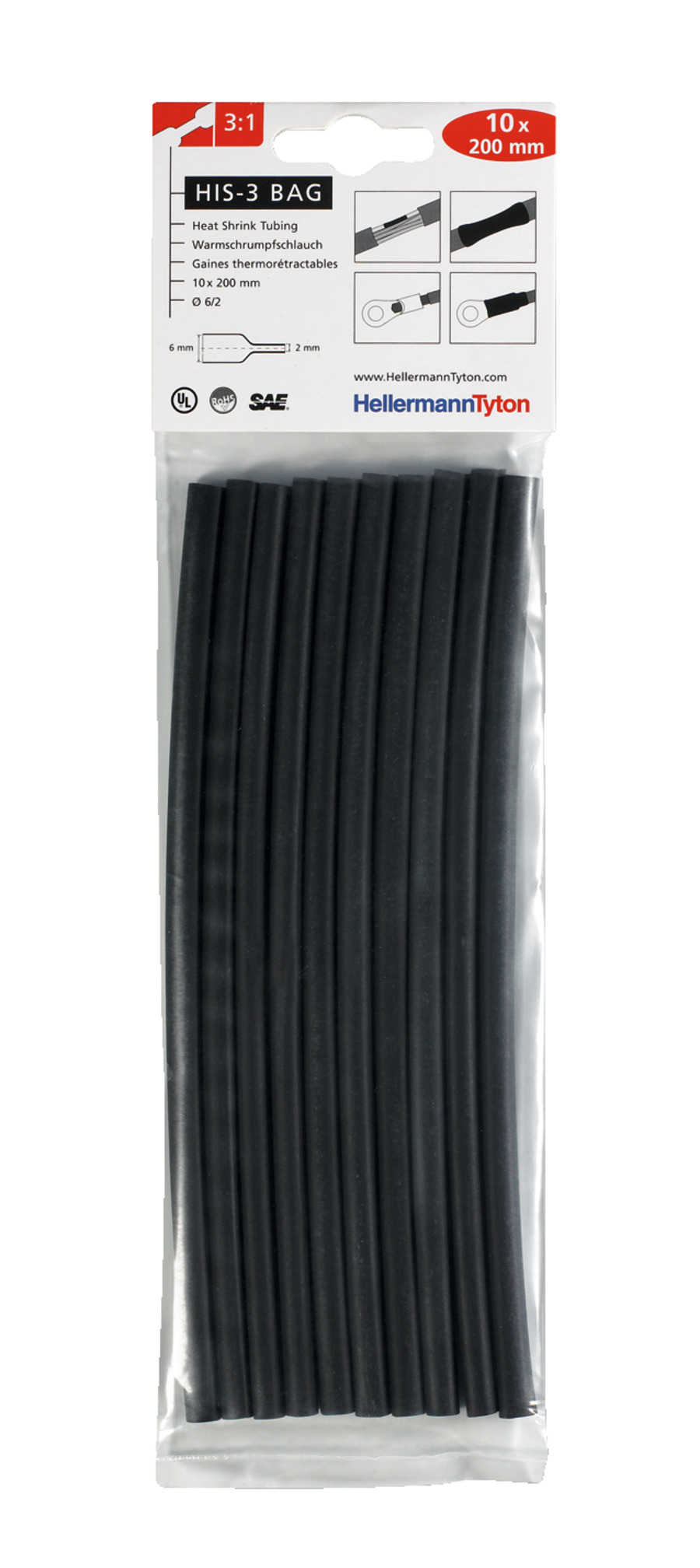 Dünnwandig: flexibel, leicht, platzsparend. 3:1 deckt größeren Anwendungsbereich ab, erhöhter Anpressdruck. Sehr gute Brandschutzeigenschaften. Kleinstverpackung für den gelegentlichen Bedarf. 4 Größen erhältlich - von 1,6 mm bis 12 mm Innendurchmesser. Blau, Rot, Braun, Grau, Schwarz, Transparent und Grün-Gelb. 10 Stück Schrumpfschlauch Abschnitte in einer Tüte . 200 mm Abschnitte. HIS-3 BAG ist ein dünnwandiger, flexibler Schrumpfschlauch mit einer Schrumpfrate von 3:1. Die 10 Abschnitte (á 200 mm) eignen sich ideal für kleinere Bedarfe in der Elektrotechnik. HIS-3 BAG ist in 4 Größen von 1,5 mm bis 12 mm in den Farben Blau, Rot, Braun, Grau, Schwarz, Transparent und Grün-Gelb lieferbar.