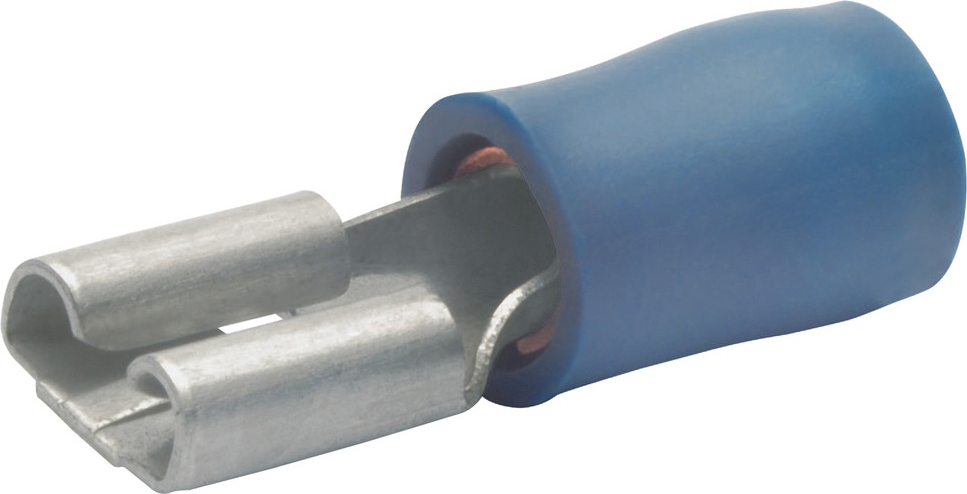 Für fein- und feinstdrähtige Leiter. Isoliert, halogenfrei. Querschnittabhängige Farbkodierung. 2,8x0,8 mm, 1,5-2,5 mm². Temperaturbeständigkeit bei 105° C. Verzinnt. Werkstoff CuZn (Messing). Isolierhülse:PA.
