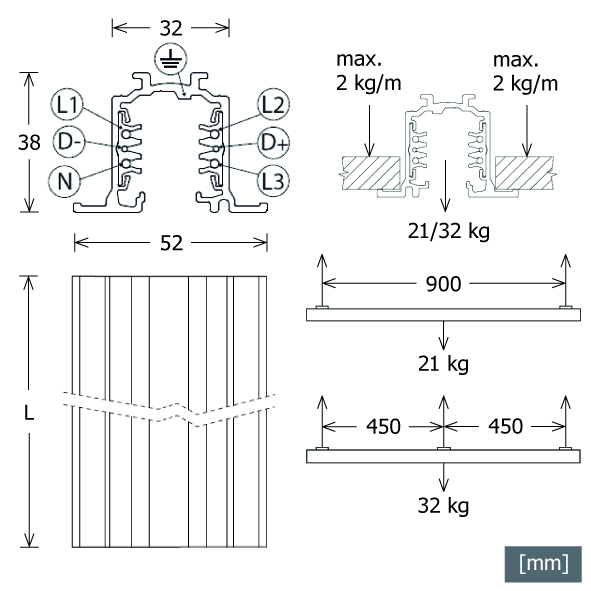 DALI-Stromschiene 3m ws Einbau ST-E 30/9000-3-R
