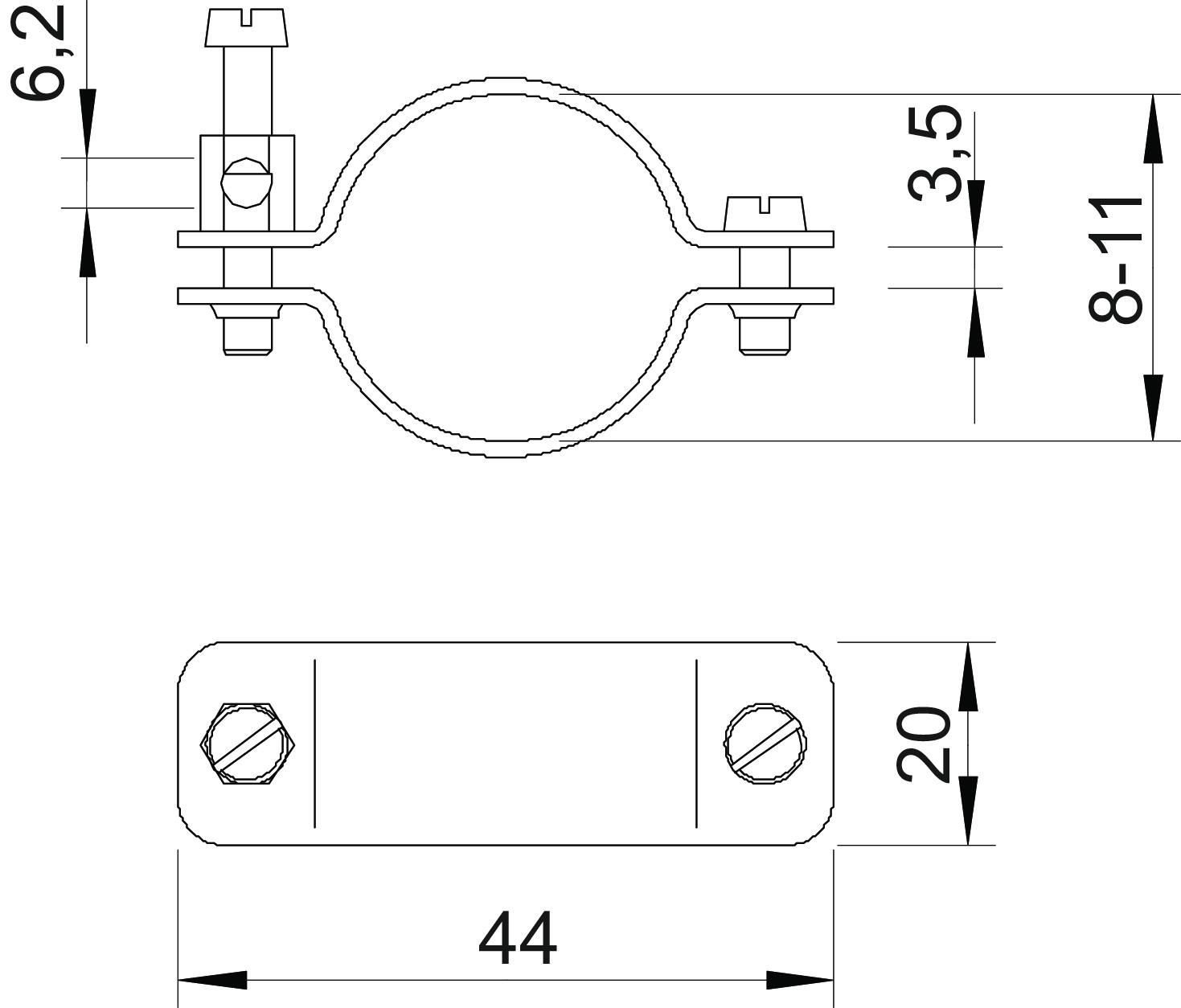 ; für Rohre 1/8 - 1 1/2 Zoll bzw. Ø 8-49 mm ; Anschlussmöglichkeiten: Leitungen bis 25 mm² ; mit Anschlussklemme und Zylinderschraube M6 x 16 aus Messing, vernickelt ; Schellenoberteil und -unterteil aus Kupfer, vernickelt