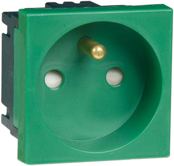 Export-Einbausteckdose Concept 45 mit Erdungsstift, 45 mm breit mit Steckklemmen, 2-polig, 10/16 A 250 V, 1fach, 0° gerade, mit erhöhtem Berührungsschutz