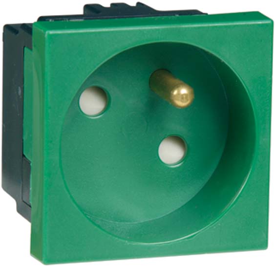 Export-Einbausteckdose Concept 45 mit Erdungsstift, 45 mm breit mit Steckklemmen, 2-polig, 10/16 A 250 V, 1fach, 33° schräg, mit erhöhtem Berührungsschutz