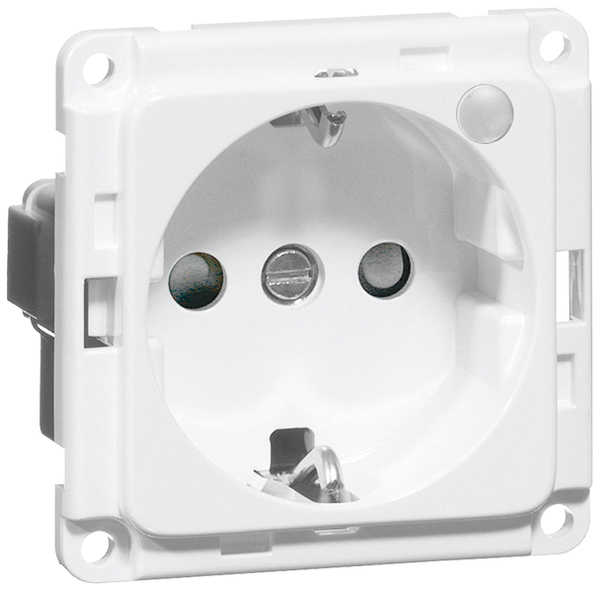 Steckdose SCHUKO mit Schraubklemmen 16 A 250 V, mit Verbindungsklemmen nach VDE 0602, mit Frontbefestigung, mit Abdeckung, erhöhter Berührungsschutz gemäß VDE 0620 und Kontroll-Licht