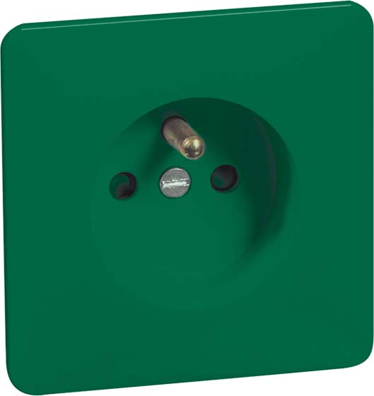 Export-Steckdose STANDARD mit Erdungsstift und grünem Sockel 2-polig, 16 A 250 V, für 58er Einbaudosen, mit Schraubbefestigung, mit grüner Zentralplatte für Kombinationen, erhöhter Berührungsschutz gemäß VDE 0620