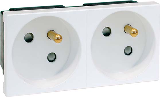 Export-Einbausteckdose Concept 45 mit Erdungsstift mit Steckklemmen, 2-polig, 10/16 A 250 V, 2fach, 33° schräg, erhöhter Berührungsschutz gemäß VDE 0620.
