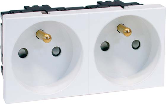 Export-Einbausteckdose Concept 45 mit Erdungsstift mit Steckklemmen, 2-polig, 10/16 A 250 V, 2fach, 0° gerade, erhöhter Berührungsschutz gemäß VDE 0620.