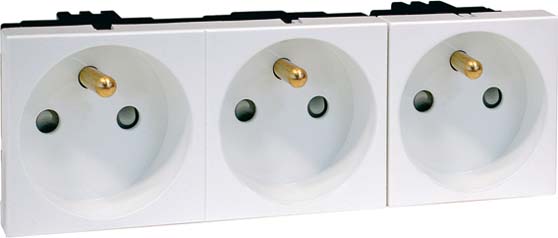 Export-Einbausteckdose Concept 45 mit Erdungsstift, 135 mm breit mit Steckklemmen, 2-polig, 10/16 A 250 V, 3fach, 0° gerade, mit erhöhtem Berührungsschutz