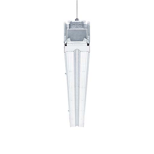 Lineare, energieeffiziente LED Lichtbandleuchte mit hoch effizienten 64 Mid-Power LEDs pro Segment. Leuchten Leistung: 68,3 W, DALI steuerbare Leuchte mit LED-Konverter, für ökologische Nachhaltigkeit und ökonomischen Nutzen. LED-Lebensdauer 100000 h bis zu einem Lichtstromrückgang auf 80 % des Anfangswertes. Farborttoleranz (initial MacAdam): 2. Leuchten Lichtausbeute: 171 lm/W. Leuchten Lichtstrom: 11680 lm. Symmetrisch breit abstrahlende Leuchte (wide beam). Farbwiedergabe Ra > 80, Farbtemperatur 4000 K. Split Linsenkonzept zur Reduktion der wahrgenommenen Blendung. Überlappende Linsen aus PMMA (splitterfest bis IK07) ermöglichen IP50 Schutz für LED und Optik. All-in-one-Lösung: Lichtbalken, Leuchtmittel und Reflektor in einem einzigen Produkt kombiniert, ermöglichen ein 100 % durchgängiges LED Lichtband ohne Unterbrechung. Hochwertiges Erscheinungsbild im gleichen Look wie die Tragschiene. Dimminglevel für DC-Modus auf 15 % voreingestellt. LED Lichtbandleuchte aus Stahlblech, lackiert in Polyesterharzlack,weiß. 100% flexible sowie werkzeuglose mechanische und elektrische Installation über CLIX-Technik mit zwei seitlich angebrachten Drehhebeln auf der zugehörige Tragschiene. Keine Ultraviolett- und Infrarot Strahlung. Umgebungstemperatur -20 °C bis 25 °C (Deckenanbau), -20 °C bis 35 °C (Pendelmontage). Leuchte halogenfrei verdrahtet und silikonfrei. Hinweis: Bei Anwendung in chemisch belasteten Umgebungsatmosphären bitte um Rücksprache mit Ihrem Berater. Abmessungen: 1498 x 60 x 85 mm. Gewicht: 2,2 kg.