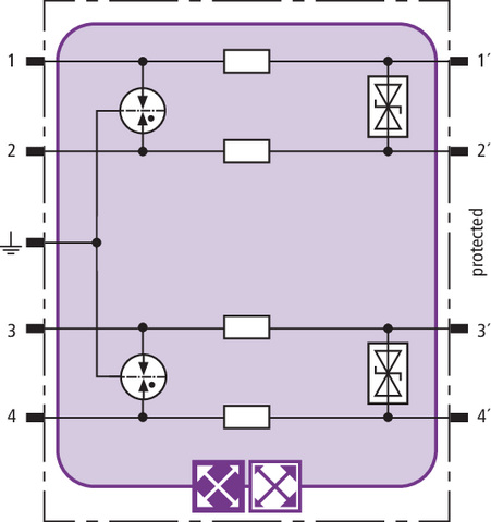 Platzsparendes Kombiableiter-Modul mit LifeCheck zum Schutz von 2 Doppeladern erdpotentialfreier hochfrequenter Bussysteme oder Videoübertragungen. LifeCheck erkennt thermische oder elektrische Überlastzustände nach denen der Ableiter auszutauschen ist. Die Anzeige erfolgt berührungslos mittels DEHNrecord LC / SCM / MCM.