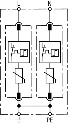 Mehrpoliger Überspannungsableiter DEHNguard M, Typ 2 nach EN 61643-11, bestehend aus Basisteil und gesteckten Schutzmodulen. Hohe Gerätesicherheit durch Ableiterüberwachung Thermo-Dynamik-Control. Zum Schutz von Niederspannungs-Verbraucheranlagen vor Überspannungen. Zum Einsatz im Blitz-Schutzzonen-Konzept an den Schnittstellen 0B 1 und höher.