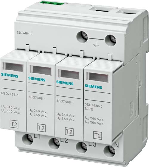 Überspannungsableiter Typ 2 Anforderungsklasse C, Uc 350V Schutzbausteine steckbar 4-polig, 3+1 Schaltung für TN-S- und TT-Systeme Überspannungsschutzgeräte zum Schutz vor Überspannungen in elektrischen Anlagen. Die Überspannungsschutzgeräte von Siemens, als wichtiger Bestandteil der SENTRON Schutzkomponenten für die Elektroinstallation, bieten effektiven Schutz bei Blitz und Überspannungen infolge atmosphärischer Einflüsse oder Schaltvorgängen. Komfortable Montage- und Anschlusstechnik sowie ein durchgängiges Design sind die Kennzeichen der Gerätefamilie. Ob für Infrastruktur oder für industrielle Anforderungen, Siemens bietet Überspannungsschutzgeräte für alle Anwendungen und jedes Einsatzgebiet. Die Siemens Überspannungsschutzgeräte zeichnen sich vor allem aus durch: 1. Effektiver Investitions- und Anlagenschutz vor Blitz und Überspannungen. 2. Für jeden Anwendungsfall der richtige Blitz-/ und Überspannungsschutz (Typ1 bis 3). 3. Fernmeldekontakt zum externen Upload der Zustandsanzeige. 4. Zuverlässige Sicherheit bei der Installation dank standardmäßig enthaltenem Umgreif- und Berührungsschutz. 5. Werkzeugloses Lösen von der Hutschiene. 6. Klar ersichtliche Fehleranzeige. 7. Datamatrix-Code vorne am Gerät bietet schnell und einfach alle Infos rund um den Blitz- und Überspannungsschutz. 8. Optimale Technik für Ihre Sicherheit - nur von Siemens.