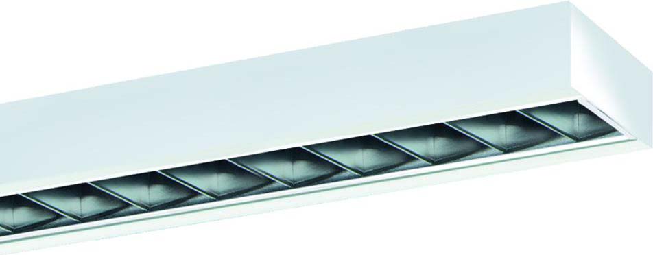 Deckenleuchte der ABRFB-Produktfamilie. Lichtlenkung durch Raster, Ausstrahlungscharakteristik symmetrisch, breitstrahlend, Lichtaustritt direkt. Leuchtmittel R-TUBE nicht enthalten, Austausch durch Endkunde möglich. Die Leuchte generiert einen Bemessungslichtstrom von 7500 lm in Lichtfarbe 840, Lichtstrom einstellbar: stufenlos. Die hohe LED-Lebensdauer ermöglicht einen langen Einsatz bei gleichbleibender Beleuchtungsgüte. Hohe Lichtqualität durch eine Farborttoleranz von < 3 SDCM. Gehäuse aus Stahl, verkehrsweiß, ähnlich RAL 9016, Schutzart IP20. Einzel- oder Lichtbandmontage. Deckenmontage mit beiliegendem Zubehör bzw. Pendelmontage mit entsprechenden Befestigungssätzen (siehe Zubehör). Mit elektronischem Betriebsgerät DALI-2. Austausch durch Fachkraft möglich. Nennspannung 220 - 240 V AC/DC 50 - 60 Hz.