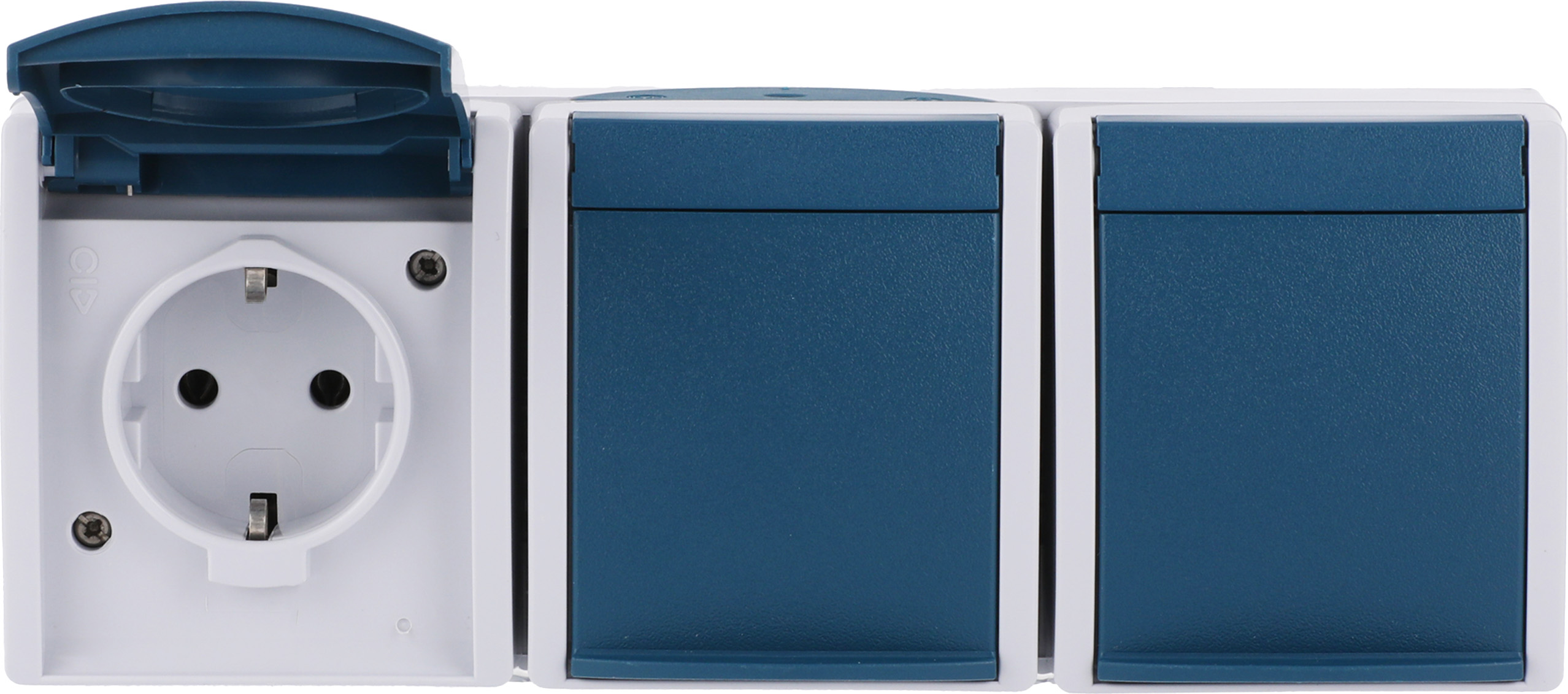 Zum Anschließen von elektrischen Verbrauchern. Für waagerechte Montage. Vorverdrahtet. Ersatzbedarf Beschriftungsträger 1763-53. Anstelle der Schutzkontakt® Steckdosen können auch Schalter, Taster, Lichtsignale oder Schutzkontakt® Steckdosen mit Schloss eingesetzt werden. Designlinie: ocean® Abmessungen Beschriftungsfeld: 57.8 x 9.8 mm