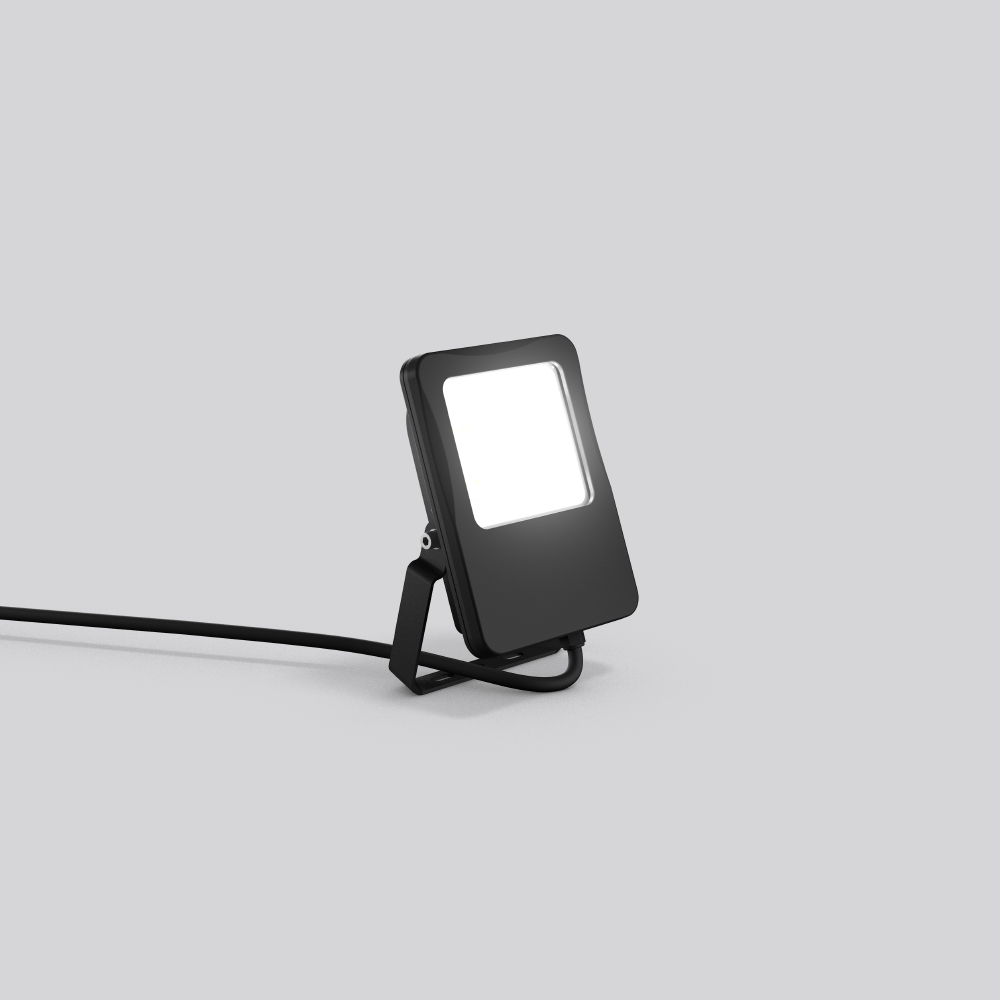 Strahler für Festanschluss. Gehäuse Aluminium-Druckguss pulverbeschichtet. Bügel Stahl, pulverbeschichtet. Abdeckung Glas, klar. Flood, breitstrahlend. Vorverdrahtet mit 500 mm Anschlussleitung.