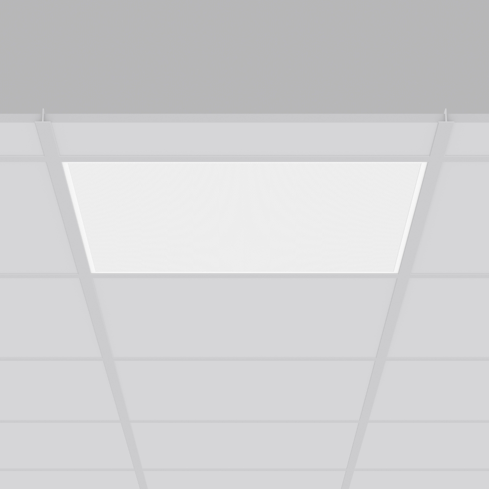 Einlegeleuchte für Deckensysteme mit sichtbaren Tragschienen. Gehäuse Stahlblech pulverbeschichtet. Leuchtenrahmen Aluminium pulverbeschichtet. Diffusor aus vergilbungsfreiem Kunststoff (PMMA) mikroprismatisch. LED Backlight-Technologie für eine homogene Ausleuchtung der gesamten lichtabgebenden Fläche. Betriebsgerät extern. MultiLumen: Einstellbarkeit des Leuchtenlichtstroms in 4 Stufen. Werkseitig auf Stufe 2 voreingestellt. Hervorragend geeignet für Bürobereiche (RUG = 19) und Bildschirmarbeitsplätze (BAP) gem. DIN EN 12464-1.