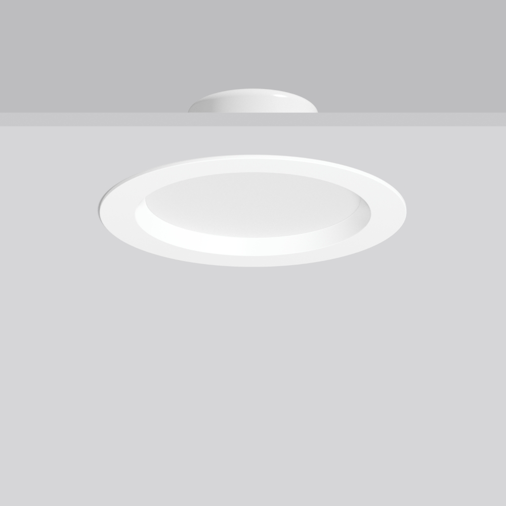 Rundes Einbau-Downlight. Gehäuse Aluminium, kunststoffbeschichtet. Passive Kühlung. Diffusor aus Kunststoff (Polycarbonat) opal, schlagzäh. MultiColour: Farbtemperatur mit Schaltelement einstellbar. Auswahlmöglichkeit 3000 K, 4000 K oder 5700 K.Werkseitig auf 4000 K eingestellt. Werkzeugloser Einbau durch Federbefestigung. Betriebsgeräte eingebaut.