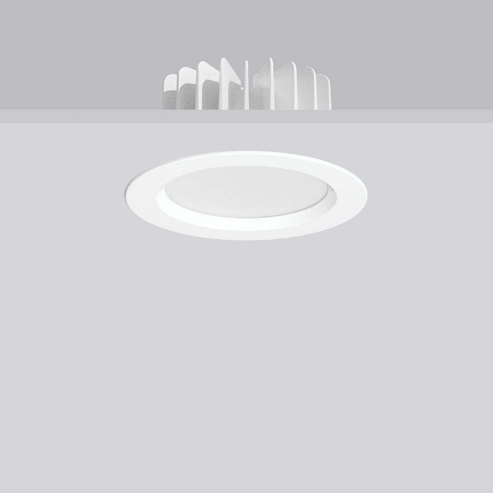 LED-Einbau-Downlight für hohe Ansprüche. Gehäuse Aluminium-Druckguss als Kühlkörper ausgelegt.Abdeckring Aluminium-Druckguss pulverbeschichtet. Schlagzähe Kunststoffscheibe opal. Serienmäßig mit Gore Protective Vents Membranventil zur Kondenswasservermeidung. Leuchte hält die hohe Schutzart auch einbauraumseitig in der Zwischendecke ein. Werkzeugloser Einbau durch Federbefestigung. Anschluss direkt an 220-240 V AC, d.h. kein Betriebsgerät erforderlich. Anschlussleitung 2 m mit freien Aderenden. Durchgangsverdrahtungsbox (5-polig) als Zubehör erhältlich. Ballwurfsicher nach DIN 18032-3. Zugelassen für den Einsatz in der Lebensmittel, und Getränkeindustrie.