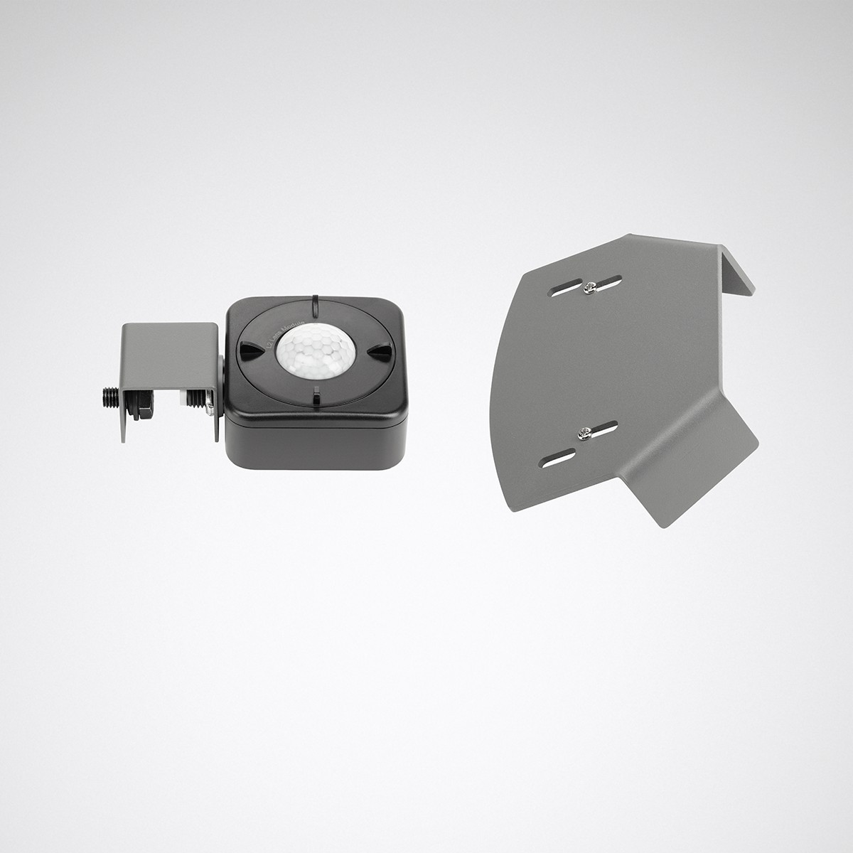 PIR-Sensor zur Bewegungserkennung. Empfohlene Installationshöhe: 5 - 12,2 m. Maximaler Erfassungsbereich Ø 18,2 m. Einstellung der Erfassungsparameter über DIP-Schalter. Einstellbereich Empfindlichkeit der Erfassung 20, 50, 75, 100 %. Haltezeit einstellbar 10 s, 1, 5, 10, 30 min. Einstellbereich Helligkeitsschwellwert OFF, 10, 50, 100 lx. Zur seitlichen Befestigung an einen LED-Hallenstrahler (rein schaltbare Variante) für abgehängte Montage Ondo G2... ET. Befestigungsmaterial und Ausgleichsgewicht im Lieferumfang enthalten. Mit 3-poliger Anschlussleitung 3 x 0,75 mm2, 1800 mm. Schutzklasse (EN 61140): , Schutzart (DIN EN 60529): IP65.