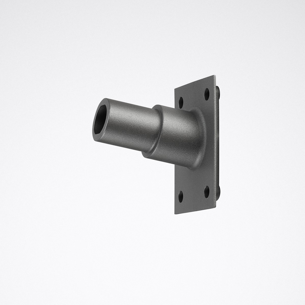 Dekorative Wandbefestigung aus Aluminiumguss. Mit 4 Befestigungslöchern Ø 10mm, versenkt. Senkung Ø 21mm, Tiefe 12mm. Tragstutzen Ø 76 mm x 100 mm. Neigungswinkel 10°. Farbe anthrazit, ähnlich DB703 mit Metalleffekt, hochwetterfest, pulverbeschichtet. Seewetter geeignete Beschichtung auf Anfrage. Geeignet für Leuchten der Baureihen Lumega IQ und Cuvia ohne Einsatz zusätzlicher Reduzierstücke. Die Lieferung erfolgt ohne Befestigungsmaterial.