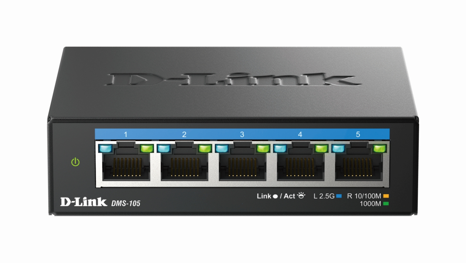 Der 5-Port Multi-Gigabit Unmanaged Switch (DMS-105) mit fünf 2,5-Gigabit-Ports bietet eine schnelle und einfache Möglichkeit, Ihr Netzwerk aufzurüsten, indem Engpässe beseitigt werden, um Leistung und Durchsatz zu maximieren. Die 2,5-Gigabit-Ports bieten eine schnelle und zuverlässige Verbindung zu NAS-Geräten (Network Attached Storage), Wi-Fi 6-Routern/Zugangspunkten und zu mehreren Gaming-Computern und Arbeitsstationen ermöglichen. Er ist ideal für anspruchsvolle Unternehmens- oder Heimnetzwerke und ermöglicht Benutzern den blitzschnellen Zugriff auf Netzwerkressourcen und die Übertragung großer Multimediadateien. Anzahl/Art der Ports: 5 x 10/100/1000/2500 Mbps
