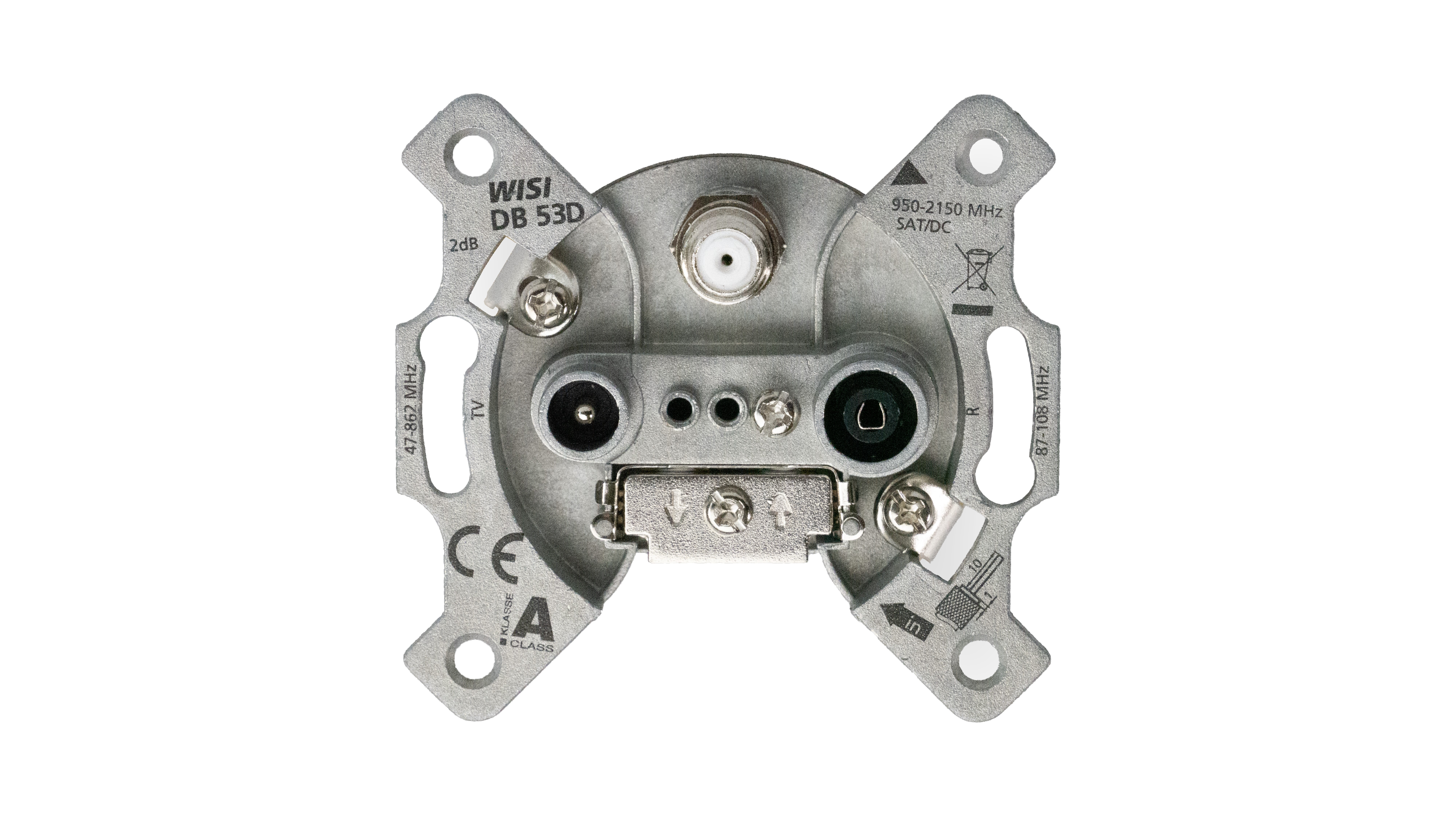 SAT Antennendose, Stichdose, <2 dB, 3-Loch, 47...2150 MHz, DC-Bypass über SAT-Ausgang, 1x SAT, 1x TV, 1x Radio