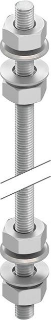 Gewindestab M 10, einschließlich jeweils vier Sechskantmuttern und Unterlegscheiben. Zur Verwendung im Funktionserhalt bitte Zusatzvorschriften beachten! Abmessungen (ca. Maße) Gewinde : M 10 Länge L : 1000 mm Festigkeitsklasse : 4.8 Werkstoff : Stahl, galvanisch verzinkt nach DIN EN ISO 4042 / DIN EN ISO 19598, blaupassiviert