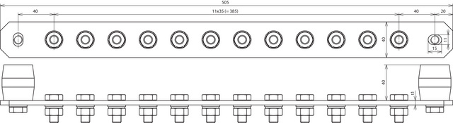 Potentialausgleichsschiene Industrie nach DIN EN 62561-1, für den Schutz und Funktionspotentialausgleich nach DIN VDE 0100-410/540 und den Blitzschutz-Potentialausgleich nach DIN EN 62305-3 (VDE 0185-305-3). Mit Isolator UP (duroplastisch, rot) mit Gewinde M10, UV-stabilisiert und halogenfrei. Auch für den Einsatz in Ex-Bereichen geeignet (Selbstlockern der Schrauben gesichert). Ausführung mit 12 Anschlüssen - Schraube M10, Federring und Mutter.