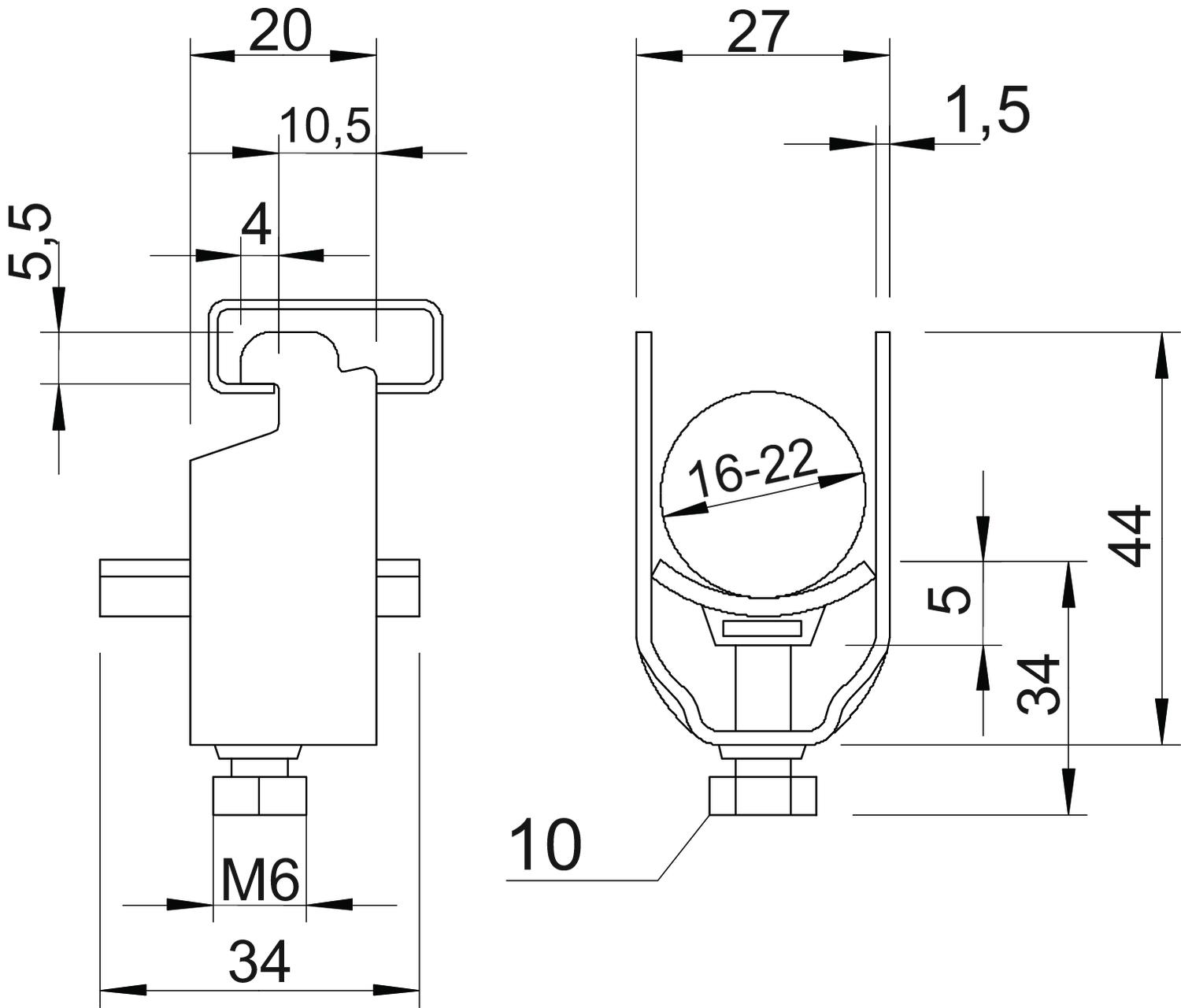 Passend zu allen C-Profilschienen mit 11 - 12 mm Schlitzweite, mindestens 6,5 mm lichter Innenhöhe und mindestens 18,5 mm lichter Innenbreite. Schelle und Schraube aus tauchfeuerverzinktem Stahl. Druckwanne aus Polypropylen, Farbe Lichtgrau RAL 7035, halogenfrei.