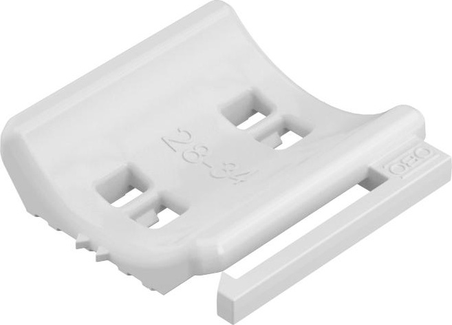Unabhängig von der Schiene, universell einsetzbar durch Aufschieben auf einen Schenkel der Bügelschelle. Durch eine intelligente Kontur auf der Rückseite, kombinierbar zur Doppelwanne. Nachträgliche Installation ohne Demontage der Bügelschelle möglich.