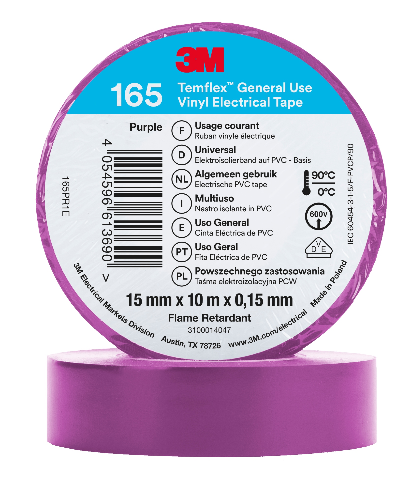 3M Temflex Vinyl-Isolierband 165 ist ein hochwertiges 0,15 mm dickes, universell einsetzbares Isolierband in hoher Qualität. Es ist hochbeständig gegen Feuchtigkeit und sich ändernde Witterungsbedingungen. Es ist ein flammhemmendes Polyvinylchlorid-Band (PVC) und anpassungsfähig in der Anwendung. Das 3M Temflex 165 Klebeband bietet hervorragenden mechanischen Schutz bei minimalem Volumen. Es handelt sich um ein UL-gelistetes und CSA-zertifiziertes Isolierband. Bei der Herstellung werden keine Lösungsmittel verwendet*. (*Gilt nicht für die Gelb/Grünen Produkte) Verwenden Sie 3M Temflex 165 Vinyl-Isolierband für das Primärisolieren von Leitungen und Kabeln (Niederspannung), Reparaturen und Anschlüsse. Dieses Isolierband bietet eine verbesserte Leistung und ist für den Einsatz im Innen- und Außenbereich geeignet. Verwenden Sie 3M Temflex 165 Vinyl-Isolierband für das Primärisolieren von Leitungen und Kabeln (Niederspannung), Reparaturen und Anschlüsse. Dieses Isolierband bietet eine verbesserte Leistung und ist für den Einsatz im Innen- und Außenbereich geeignet.- Hersteller-Artikelnummer (MPN)
