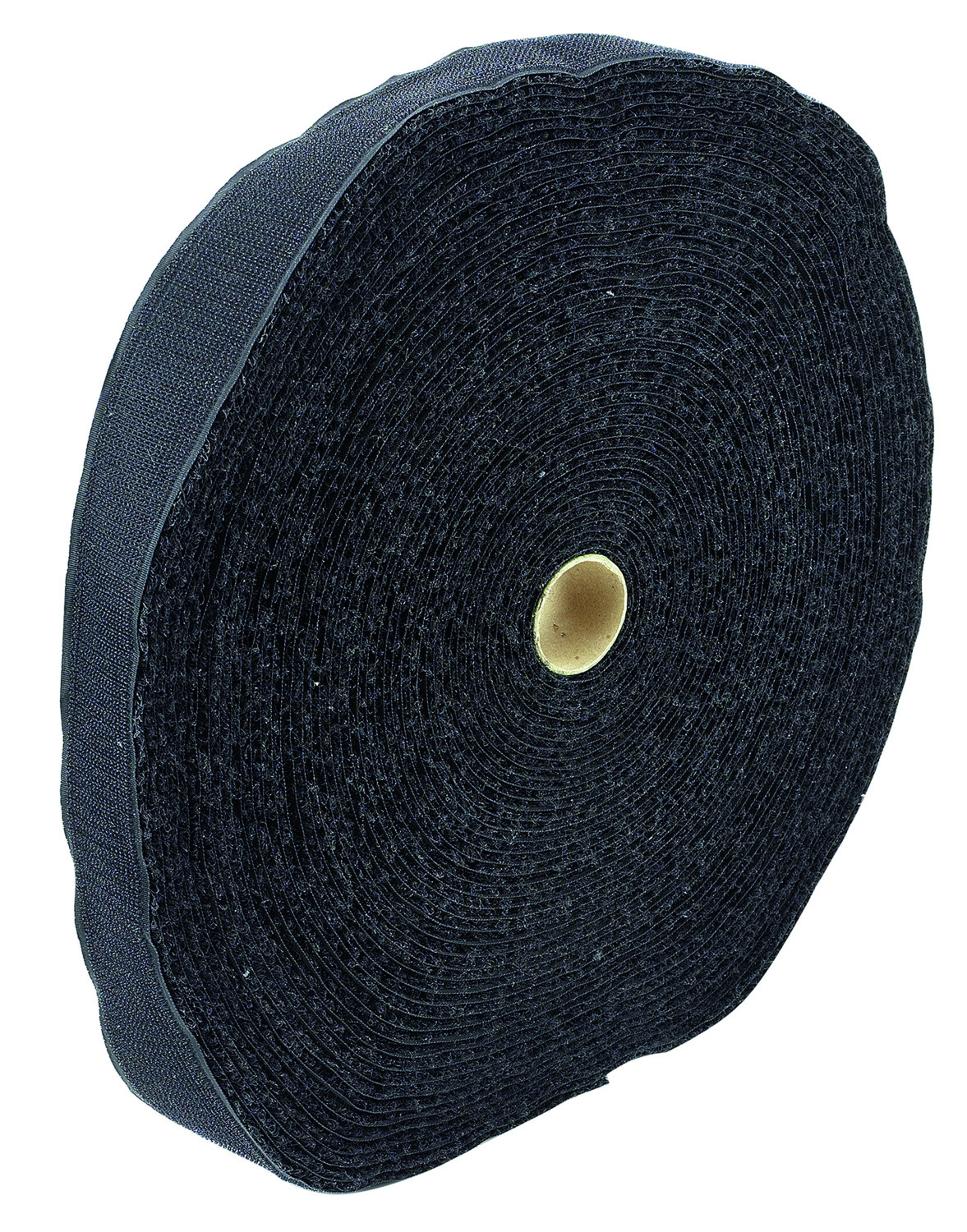 Klettband, aus schwarzem, extrudiertem Polyamid-Velours-Laminat, Dicke ca. 1, 4 mm, selbsthaftend back to back, geeignet für ca. 200 Betätigungen, außer der Standardfarbe schwarz ist lieferbar weiß, rot, blau, grün, gelb. Mindestabnahme bitte anfragen, Lieferzeit ca. 8 Wochen, Klettbinder-Rollenware, Rolle 25 m Länge für individuellen Zuschnitt auf gewünschte Länge- Hersteller-Artikelnummer (MPN)